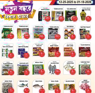 Halal Meat, Frozen Fish, Fresh Vegetables, Spicies,Phone cards etc.